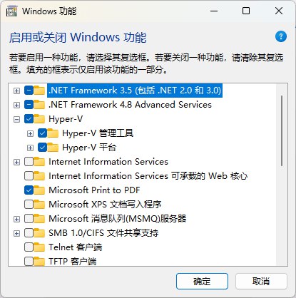 打开控制面板->程序->启用或关闭Windows功能勾选Hyper-V,同时勾选适用于Linux的Windows子系统以及虚拟机平台,重启电脑(可以等安装WSL的时候再重启)