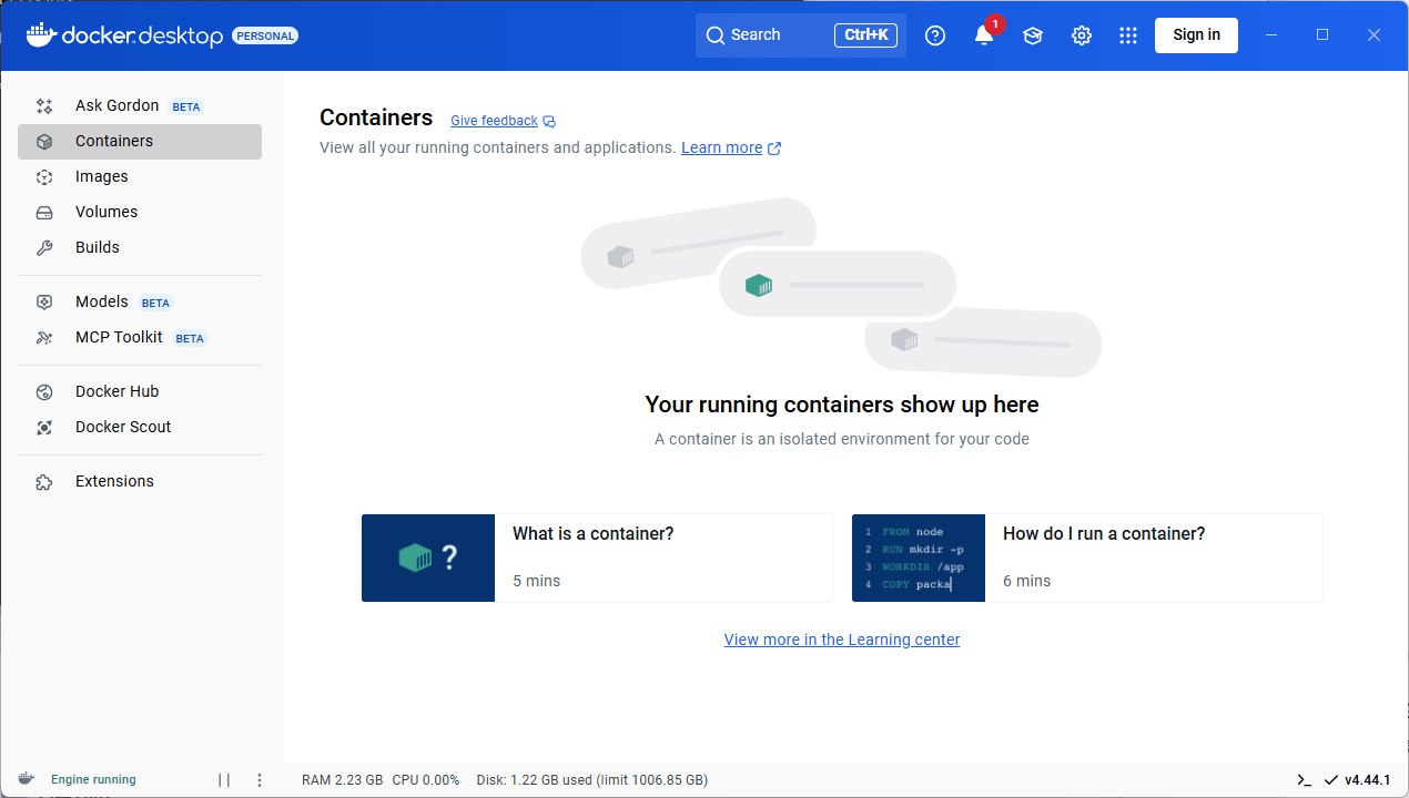 注意:前面已经完成Hyper-V和WSL的安装,所以能够正常打开Docker Desktop